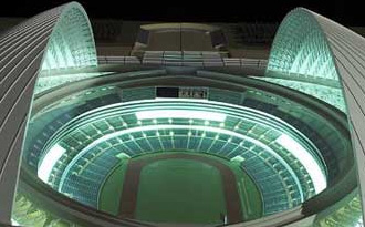 寄托著人類對(duì)未來(lái)的希望。設(shè)計(jì)者們對(duì)這個(gè)國(guó)家體育場(chǎng)沒(méi)有做任何多余的處理,只是坦率地把結(jié)構(gòu)暴露在外,因而自然形成了建筑的外觀。 "鳥巢"以巨大的鋼網(wǎng)圍合、覆蓋著9.1萬(wàn)人的體育場(chǎng);觀光樓梯自然地成為結(jié)構(gòu)的延伸;立柱消失了,均勻受力的網(wǎng)如樹(shù)枝般沒(méi)有明確的指向,讓人感到每一個(gè)座位都是平等的,置身其中如同回到森林;把陽(yáng)光濾成漫射狀的充氣膜,使體育場(chǎng)告別了日照陰影;整個(gè)地形隆起4米,內(nèi)部作附屬設(shè)施,避免了下挖土方所耗的巨大投資。