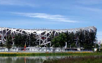 "鳥巢"是2008年北京奧運(yùn)會(huì)主體育場(chǎng)。由2001年普利茨克獎(jiǎng)獲得者赫爾佐格、德梅隆與中國(guó)建筑師合作完成的巨型體育場(chǎng)設(shè)計(jì),形態(tài)如同孕育生命的"巢",它更像一個(gè)搖籃,